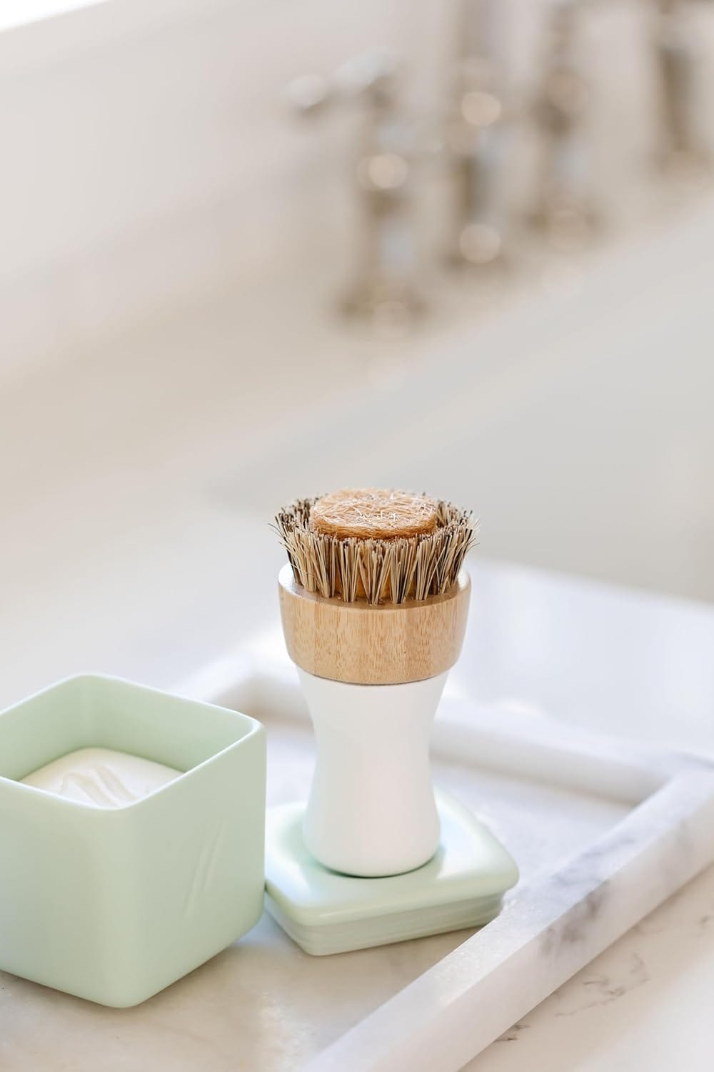 Superplus Wash Store hard and soft bamboo brush set in ceramic bowls